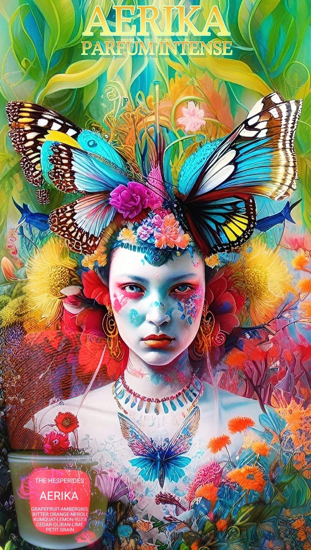Il profumo AERIKA della linea THE MYTHOS PARFUM è la descrizione olfattiva del mito della ninfa Erica. AERIKA era una delle ninfe Esperidi che proteggevano l'albero dell'eterna giovinezza,figlia della notte era anche custode di quella porzione del giorno che va da dopo il tramonto alla notte.Erica è una giovane fanciulla pudica e dolcissima dalla carnagione rosata e fresca ma con una espressione sempre nostalgica che rappresenta l'amarezza della fine del giorno, avvolta da un alone di magico mistero.Il pompelmo fresco e amaro è proprio l'essenza che rappresenta AERIKA amareggiata dal giorno che finisce ma incuriosita dal misterioso tramonto che la avvolge e dalla fresca notte che si sta avvicinando.Agrumi freschi amari,quasi ghiacciati che spruzzati danno l'idea di una doccia gelida e rinfrescante sotto il torrido sole d'estate,caratterizzano il profumo della ninfa Esperide AERIKA.