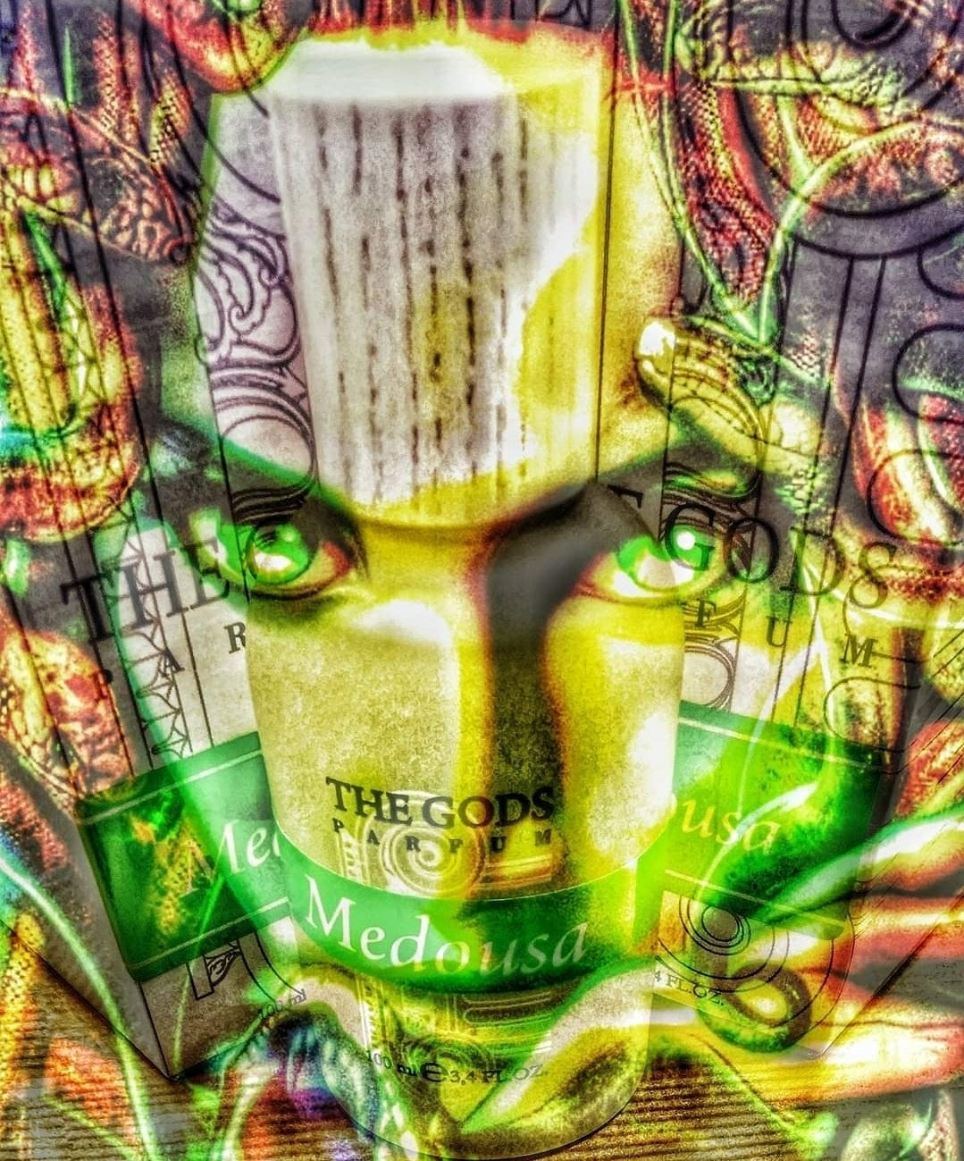 MEDOUSA (fruttato-fiorito-muschiato) Nel suo profumo la frutta verde, acerba, rappresenta il verde acceso dei suoi occhi; il bergamotto la forza esplosiva dei suoi incantesimi, il gelsomino e la vaniglia la sua parte femminile e il muschio infine ricorda l'odore della grotta in cui è costretta a vivere e a nascondersi!!