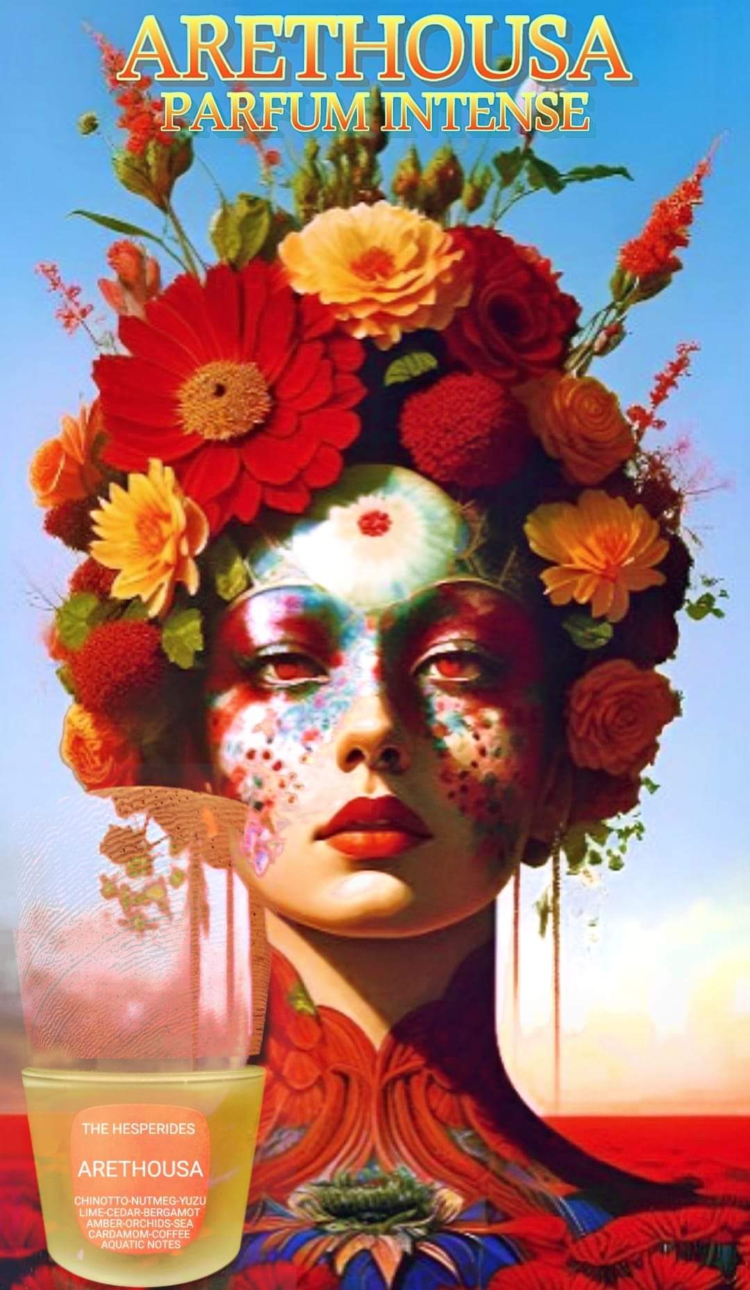 Il profumo ARETHOUSA è la descrizione olfattiva del mito della ninfa Aretusa,della linea THE MYTHOS PARFUM, che per sfuggire dalle insidie di Alfeo venne trasformata da Artemide,di cui era ancella inviolabile,in un fiume che diede origine alla magica fonte d'acqua Aretusa.Aretusa era una delle ninfe Esperidi che proteggevano l'albero dell'eterna giovinezza;era la più giovane,la più pura,la più bella e proteggeva la seconda parte più luminosa del giorno(da mezzogiorno alle 15 circa).La fragranza che la descrive è pura,acerba,liquida che scorre come l'acqua di una fonte vicino al mare,ricorda gli agrumi freschi un po' ghiacciati ed un po' speziati come lime,bergamotto,chinotto e cedro.