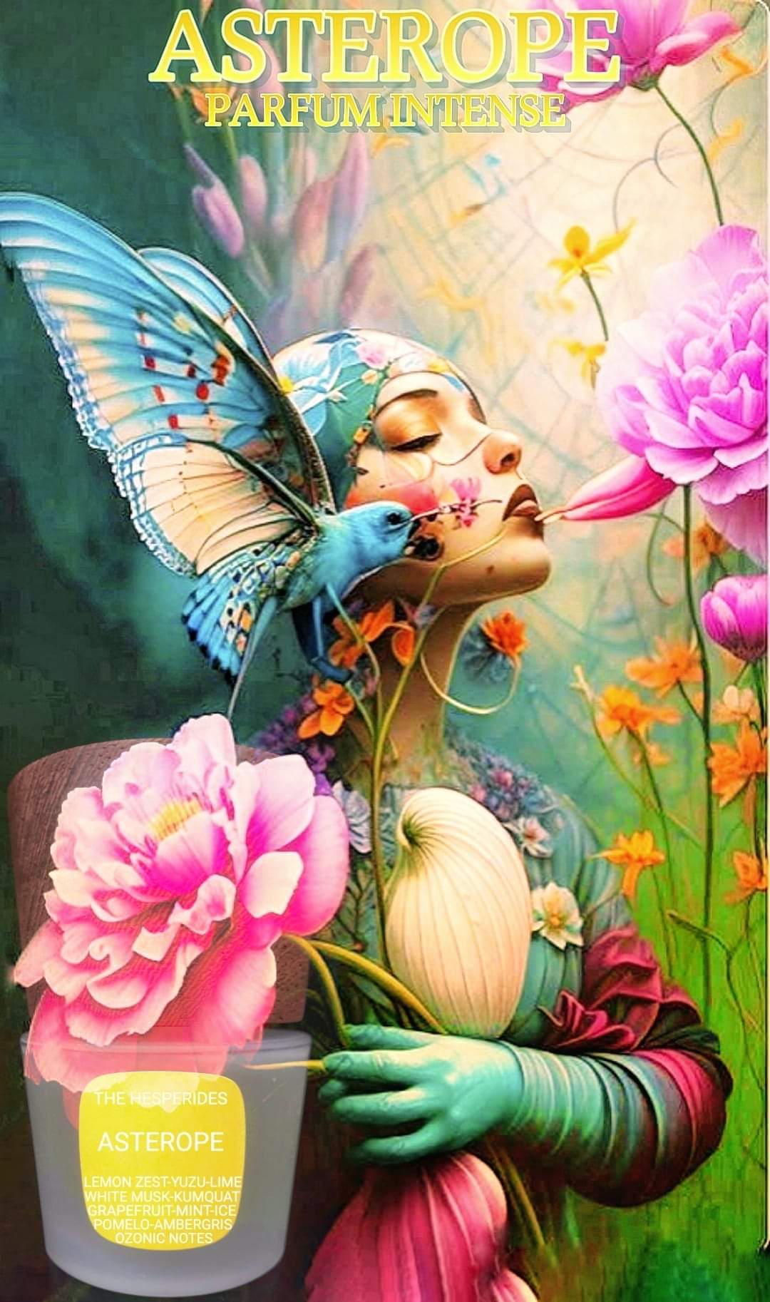 Il profumo ASTEROPE,che appartiene alla famiglia THE HESPERIDES della linea THE MYTHOS PARFUM è la descrizione del mito della ninfa Asterope.Come le altre Esperidi Asterope è custode di una porzione del giorno e questa ninfa controlla la prima parte del giorno,quando il sole è appena sorto ed è chiaro,luminoso e giallo nel cielo.Il suo profumo è fresco,agrumato,caldo ma arriva ghiacciato come una saetta che quasi scotta come la sabbia nelle ore più calde,davanti ad un mare gelido d'estate!