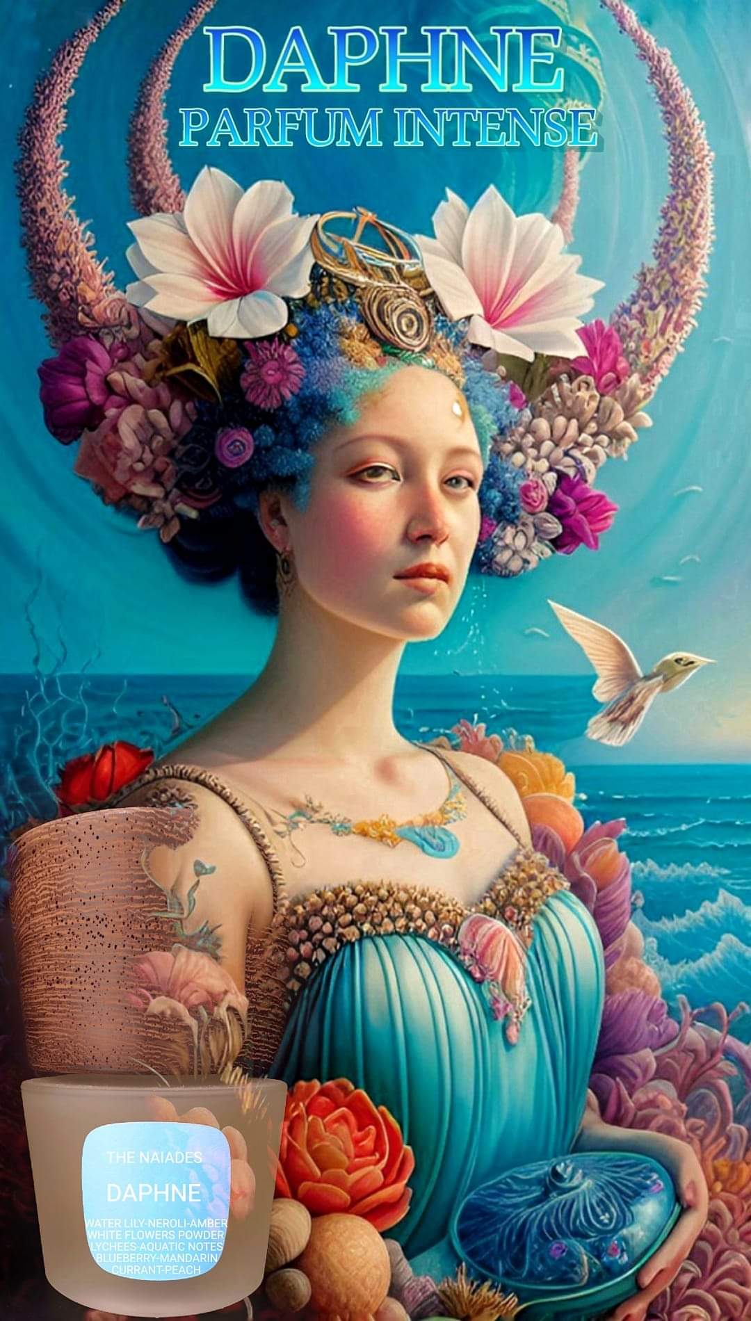 Dafne figlia del fiume Peneo, questa Ninfa amata e perseguitata da Apollo per sfuggirgli venne mutata in alloro. Naiade bellissima dalla pelle color pesca, emanava naturalmente odore di fresco, di frutta e di fiori d'acqua!